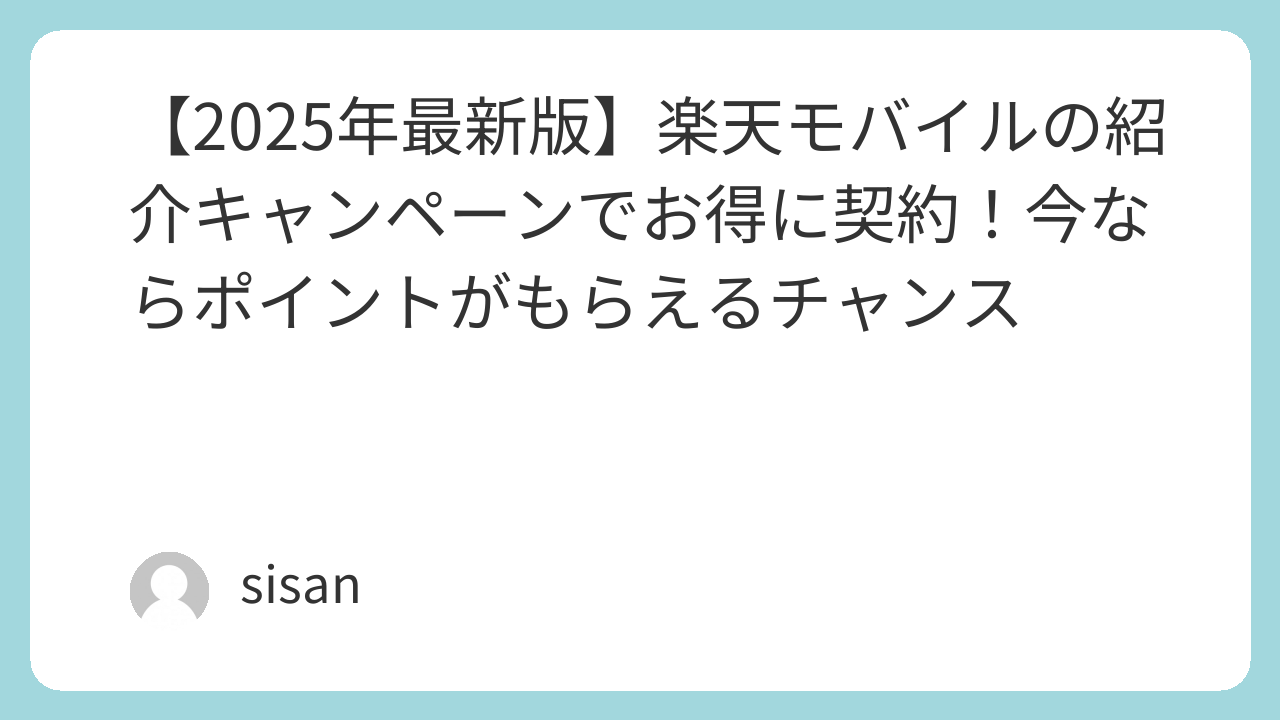 こんにちは!この記事では、私が実際に使っている楽天モバイルの紹介キャンペーンについて紹介します。